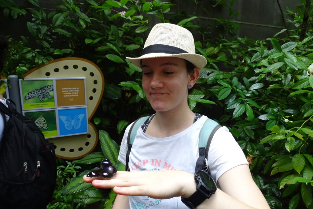 Dvěma výběhy jsme mohli projít skrz, a tak jsme se ocitli uvnitř tropického lesa s pestrobarevnými motýly 🦋 kteří na nás z nějakého podivného důvodu neustále nalétávali a odpočívali (což pobavilo všechny turisty okolo), a v lese, kde jsme mohli vidět opice, kančily, spousty ptáků 🐦býložravé kaloně, lenochoda dvouprstého (na toho se obzvláště Veru těšila, ale bohužel jsme ho nenašli, tak třeba příště) a další.