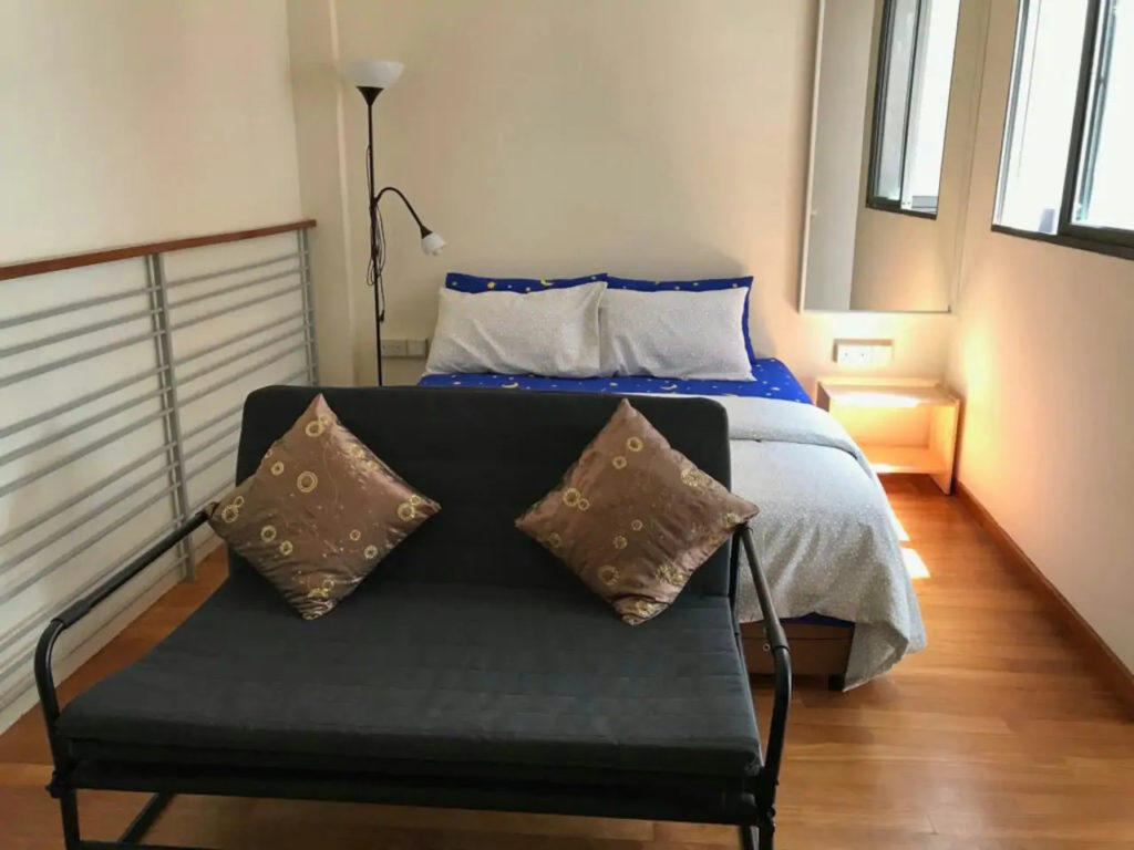Ubytováni jsme byli v jednom apartmánu, ve čtvrtém patře bez výtahu. S levným ubytováním je to v Singapuru trochu složitější, protože většinou to znamená malý „kamrlík“ bez oken a toaletu se sprchou dohromady. Proto jsme se radovali z celkem dobré nabídky (cca 880 Kč za osobu za noc) na Airbnb, kde měl pokoj na obrázku i okna ✔️
