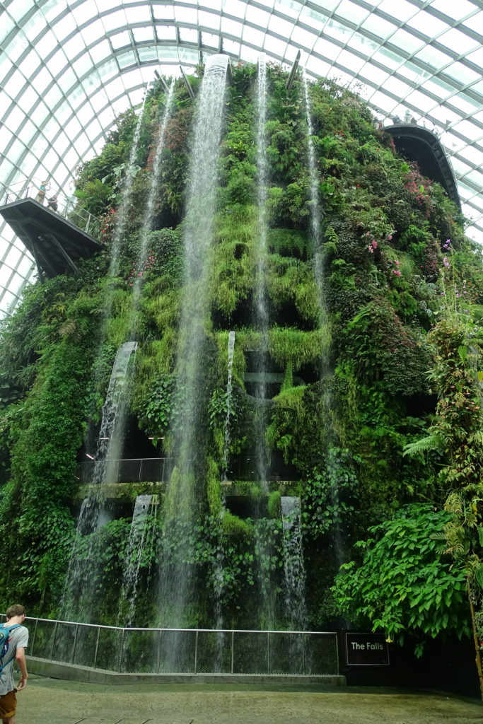 Nám se ze zahrad moc nechtělo, takže jsme navíc navštívili i obrovský skleník Cloud Forest (jedná se o jeden z největších skleníků na světě, který nenese žádné přídavné podpěry a sloupy). Vstup do něj je už za poplatek (cca 350 Kč za osobu nebo cca 500 Kč za osobu, pokud navštívíte oba skleníky). Tomuto skleníku už při vstupu dominuje obrovská hora s vodopádem pokrytá nejrozmanitějšími rostlinami (včetně těch ohrožených). Spolu s druhým skleníkem (Flower Dome) pak shromažďují dešťovou vodu a pomocí její cirkulace v chladícím systému regulují horký vzduch i vodu uvnitř. Byla nám tam opravdu zima! Mezi skutečné skvosty bychom pak vypíchli zejména obrovskou sbírku orchidejí různých velikostí (květy těch nejmenších měly sotva pár milimetrů a kdyby nebyla poblíž pořádná lupa, nikdy bychom si jich nevšimli), barev a tvarů, dále neméně velkou sbírku bromélií či masožravé rostliny.